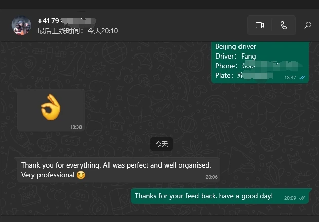Thanks for the quick service today! Although we made a last-minute booking by phone, all was arranged very quickly. Nice and clean car and very good and polite driver; going to use this service more(as we often are in Beijing)