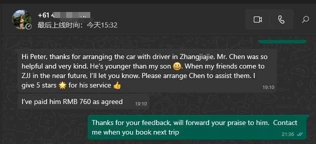 Next trip to China, I will definitely use your service again.