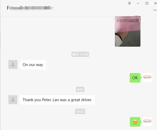 As you may remember, we used the service of Delight Cars in November. Our driver was Mr Yan.