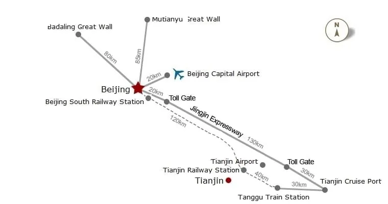 Tianjin Cruise Port – Beijing downtown 180 km, 2.5 hours drive